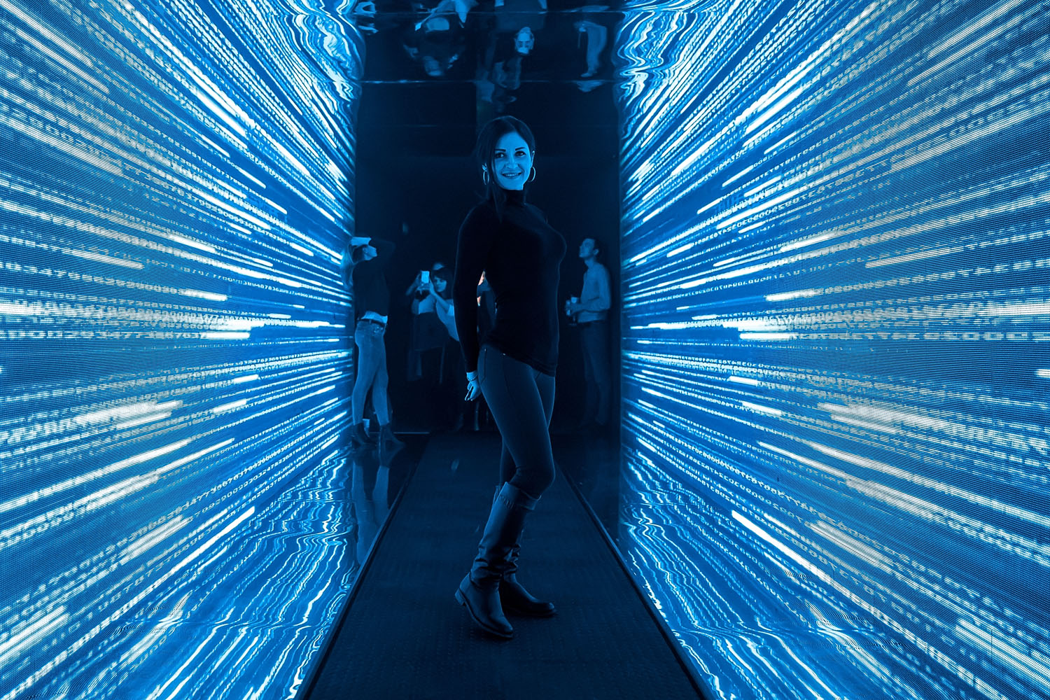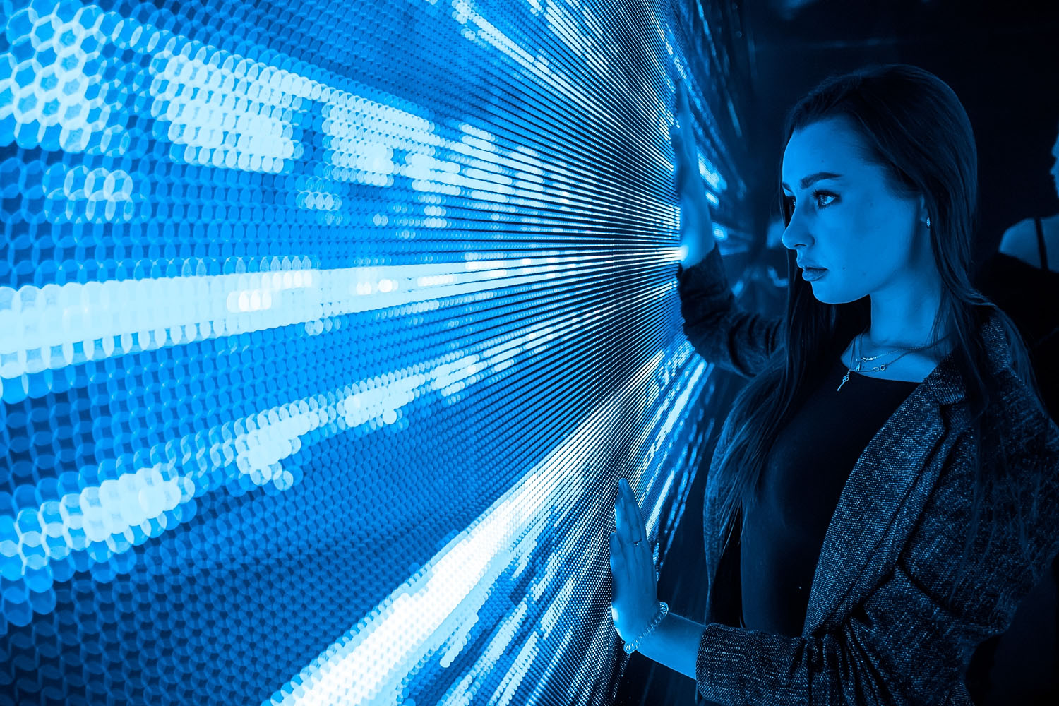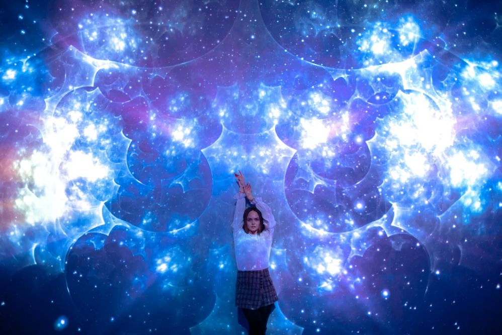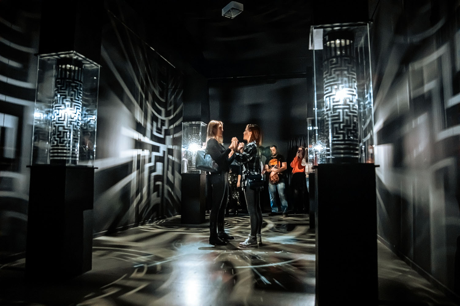 После нанесения трафаретной карты на стену, экспонат был дополнен сенсорной проекцией. Благодаря данному апгрейду, посетитель